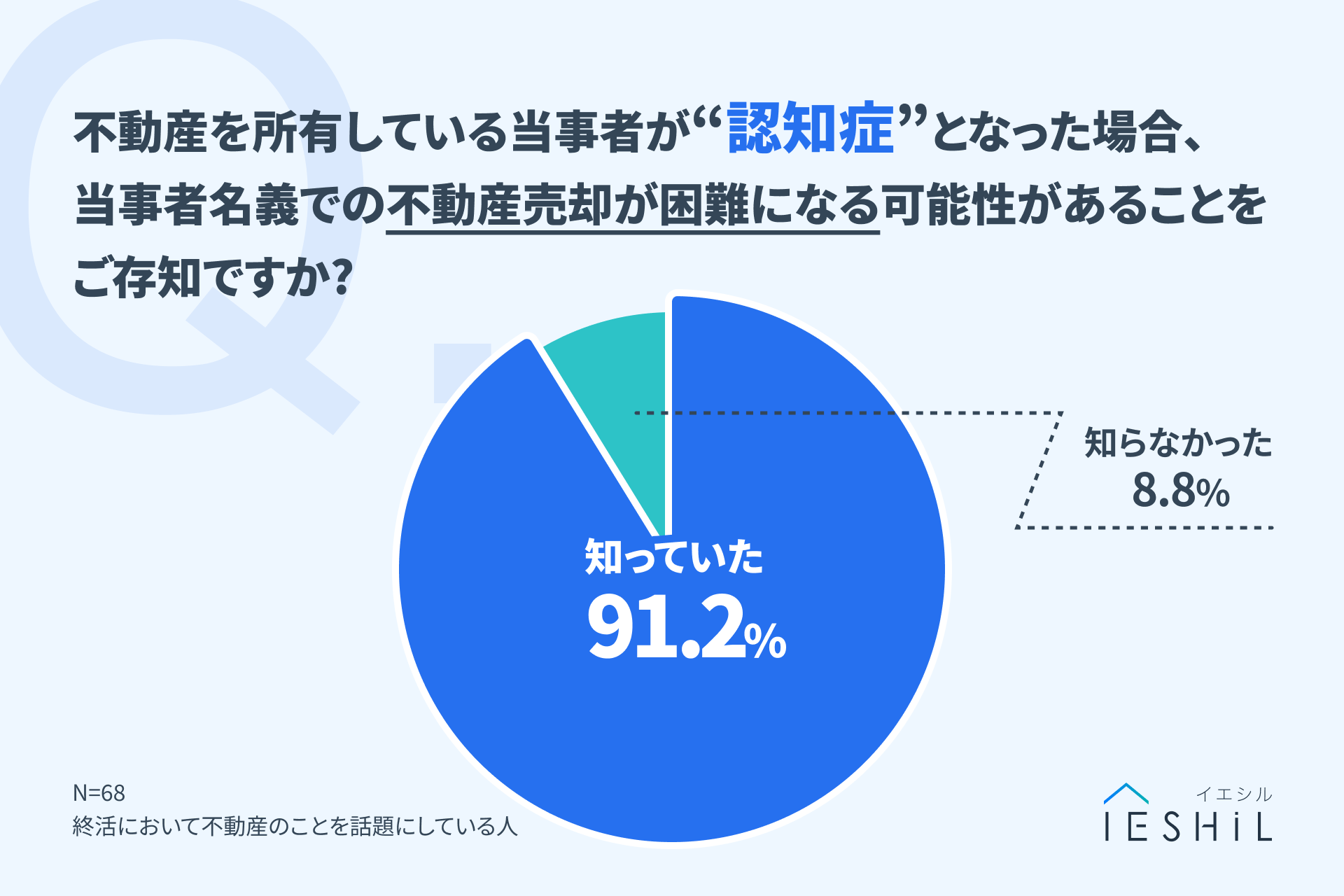 一方で、終活において不動産のことを話題にしている層に限定して同じ質問をしたところ、「知っていた」と回答した人は91.2%に達しました。