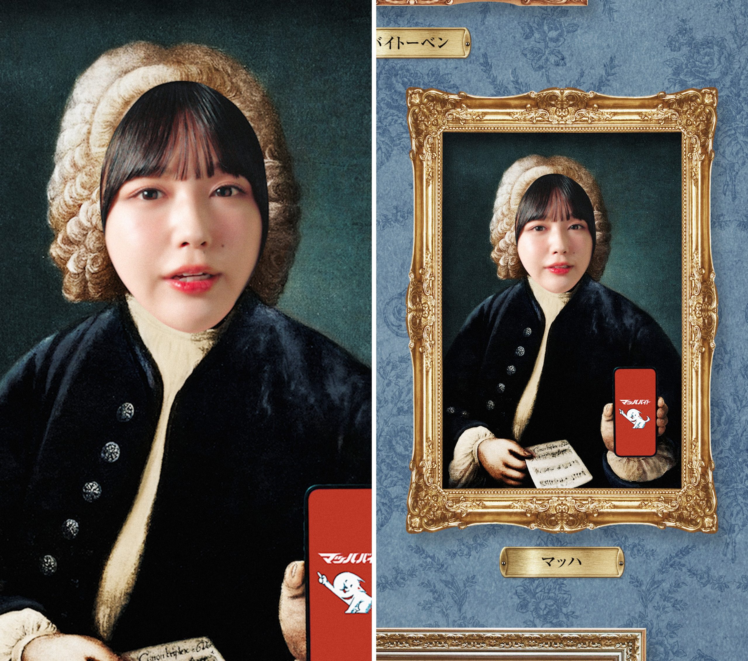 ストーリー:肖像画に扮したなえなのさんが「ばはよう(おはよう)」と挨拶。「バッハじゃなくてマッハです」と自己紹介してマッハバイトの魅力をクラシック音楽にのせてテンポよく叫びます。